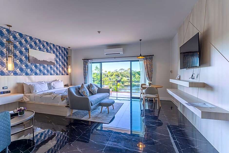 The spacious twin/double room features air conditioning, a seating area, a terrace with garden views as well as a private bathroom boasting a shower.